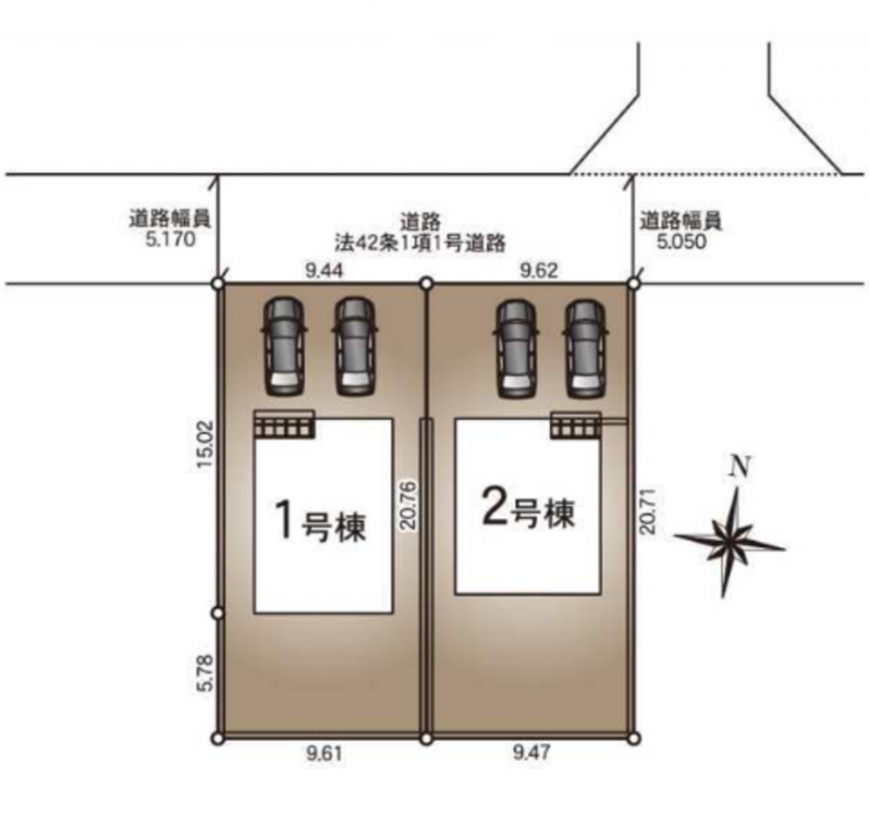 - 北側 公道5m 間口約9.6m